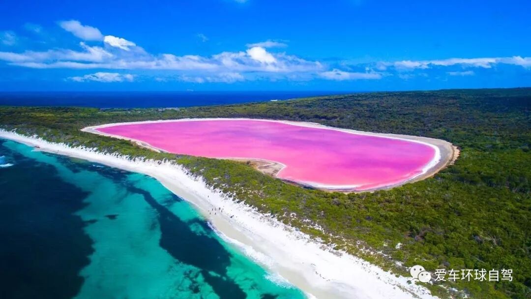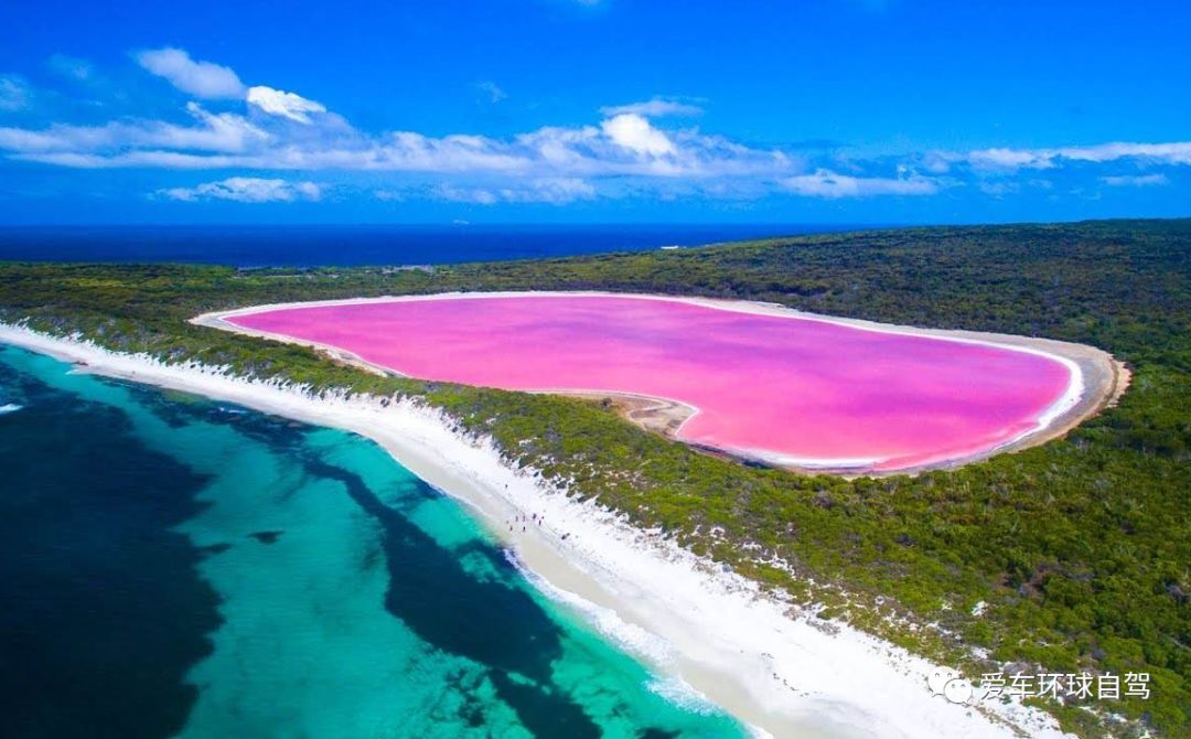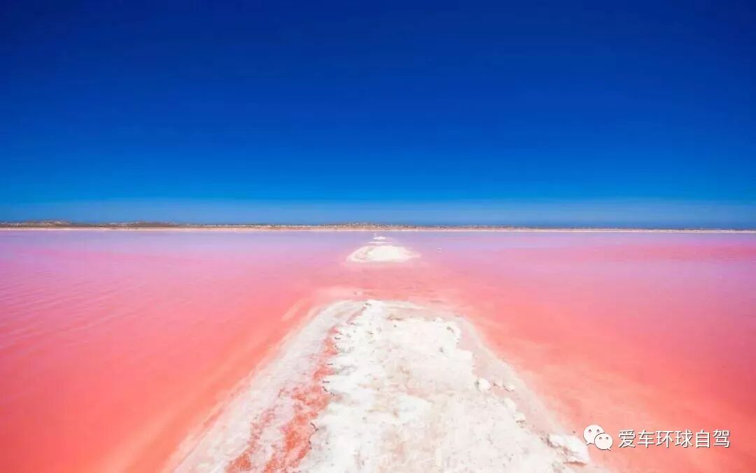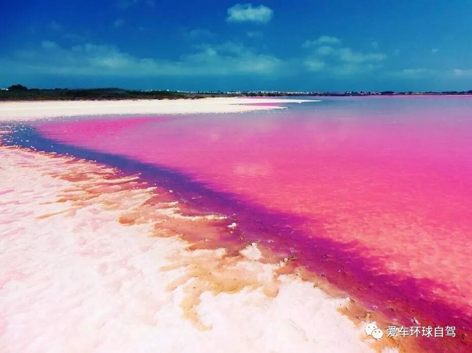 一个粉红色盐湖,位于海岸附近的北口的赫特河,西澳大利亚中西部,呈现美丽的粉红色,就像一个羞涩的新娘,该湖比一般湖泊的咸度更大,这主要是因为湖中藻类产生丰富的β-胡萝卜素,使湖水的盐性大,而且略带著明亮的粉红色。