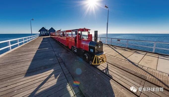 1865年开始修建,直到1960年建成,延伸向大海深处近2000米,南半球最长、全世界第二。早期应航运需求,人们在此修建码头,随着木材、羊毛等各类出产的贸易逐渐繁荣,码头不断地向大海中延伸,重要的港口,桥面上还建有铁轨。后来,随着社会经济的发展,港口深度不再适合大型船只停靠,政府关闭了栈桥的码头功能,在民众的呼吁下,栈桥成为旅游胜地。