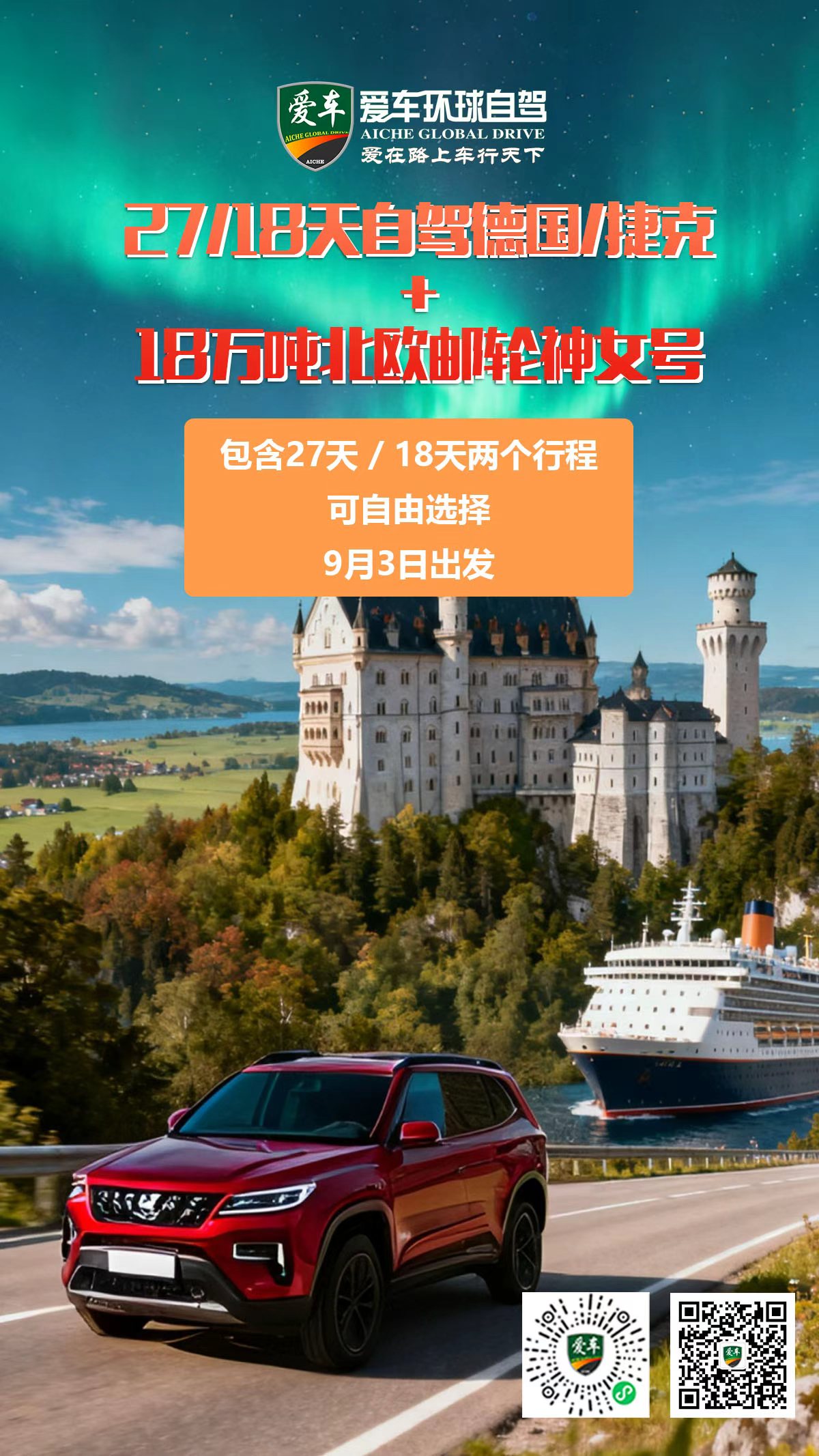 活动简案一:(总26天)深度环驾德国捷克 + MSC北欧邮轮神女号(18万吨)